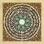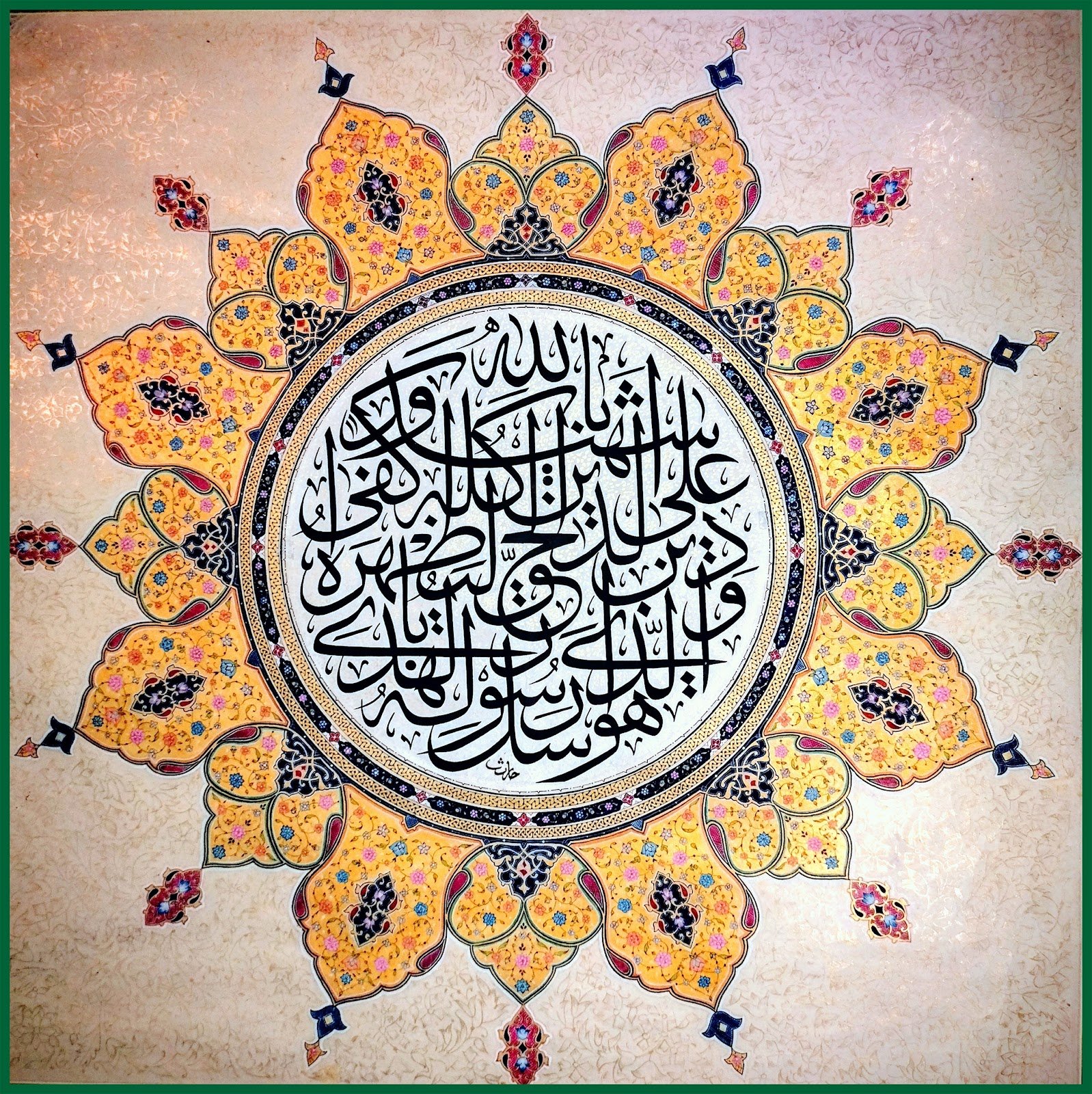 The artwork is designed in a Shamsa (sunburst) style, which is traditionally used to represent divine light and honor.