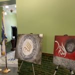 President of the Islamic Arts Society Dr. Khawaja Azimuddin informed the visitors that Islamic art has been produced over the last 1400 years by Muslim and non-Muslim artists. “Calligraphy and interlacing arabesque or geometric patterns are the Hallmark of Islamic art. You will often notice there are no figures or humans in this art. You will see it as intricate repetitive vegetal or biomorphic patterns and you will find it almost everywhere around you in clothing, carpets, or decorations. There may be patterns inspired by Islamic arts even at your home and you may not have realized it”. He said.
