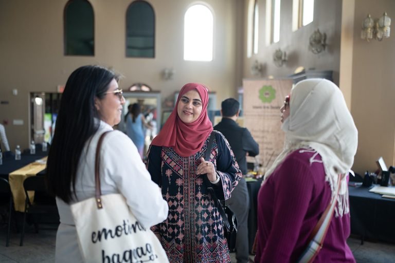 Our team displayed the pieces of Islamic art, and Calligrapher Mustafa Younuszad wrote the names of guests in Arabic calligraphy. Henna artist Zohra decorated the hands of visitors with henna tattoos. The IAS program display was the center of attraction at this event.