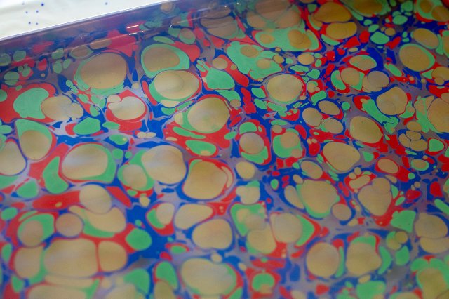 Ebru, the Turkish art of paper-marbling, traces its roots to the Silk Road. The practice involves painting on the surface of water, using specialized tools to create exquisite patterns, including flora and fauna. The water painting is then transferred onto paper. We will learn basic techniques of the ancient Islamic art form and leave the workshop with several unique pieces. All materials will be provided.
