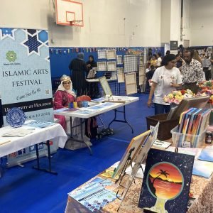On September 6th, the Islamic Arts Society had the wonderful opportunity to participate in the Emerging Communities Initiative American Mosaic Festival! We were able to interact with so many amazing organizations and visitors, and even showcase the talents of our artists! Our ebru artist Nihal Sönmez and calligrapher Sana Mirza had a great time showing off their wonderful talents!