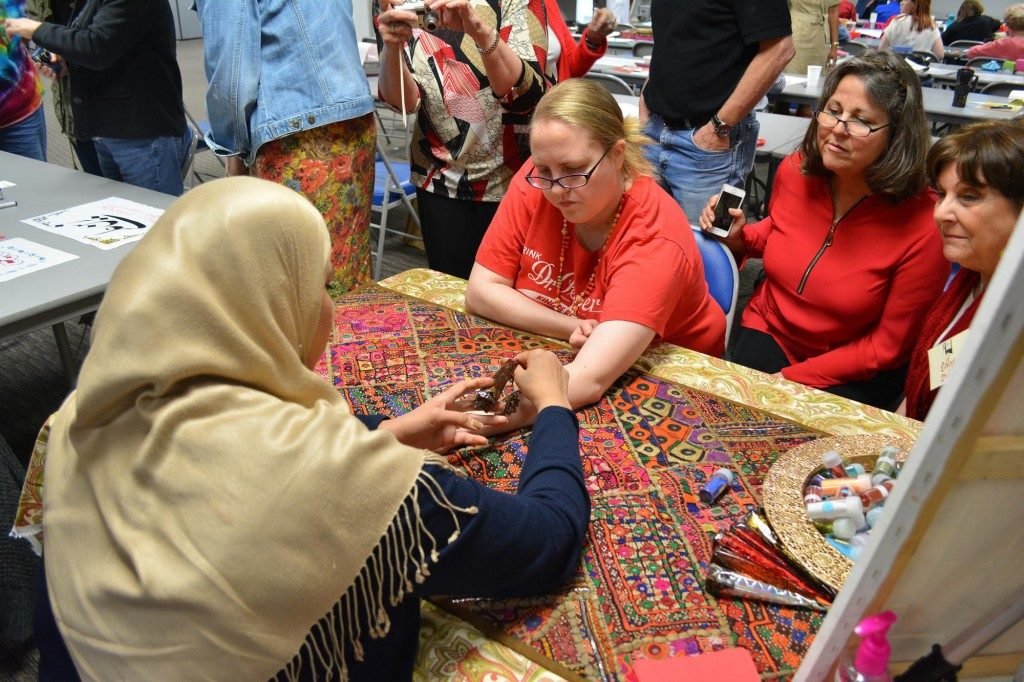 “We had an amazing LIFE program today by Zohra Siddiqui with assistance by artist Fatema Josh. The Islamic Arts Society truly was able to cross cultural boundaries with the wonderful interactive henna tattoo presentation by Zohra. Our presenters were so personable and caring and easy to talk to and ask questions. And they are also talented artists as evidenced by the lovely display they created in the library. Thank you for coming to the library and giving us a little taste of your culture. I think I am starting to understand why henna means happiness. You brought a little happiness into LIFE today. Hope you come again”