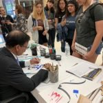On the 10th of April 2019 Three artists from the Islamic Arts Society in the Islam Awareness week at The Sam Houston, State University in Huntsville, TX. The event was held at the Newton Gresham Library. Artist Zulfiqar Ali intrigued visitors with beautiful Arabic Calligraphy while artist Zohra Siddiqui drew exquisite henna patterns on hands. Artist Shaheen Rahman mesmerized with Ebru water marbling on paper. The event was heavily attended by students and faculty of Sam Houston State University and for many of them it was their first positive exposure to Islam.